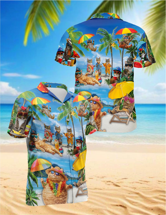 Netecom Funny Cats On Vacation Hawaiian Shirt for Me...