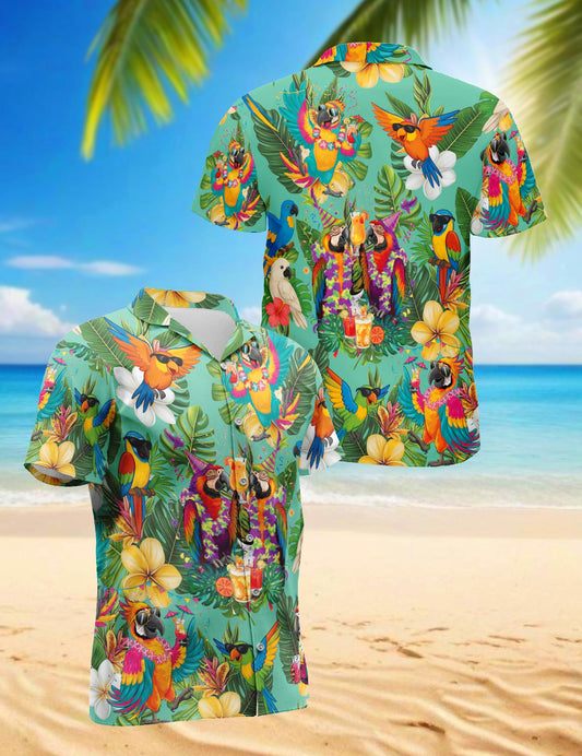 Netecom Parrots Hawaiian Shirt for Men, Tropical Sty...