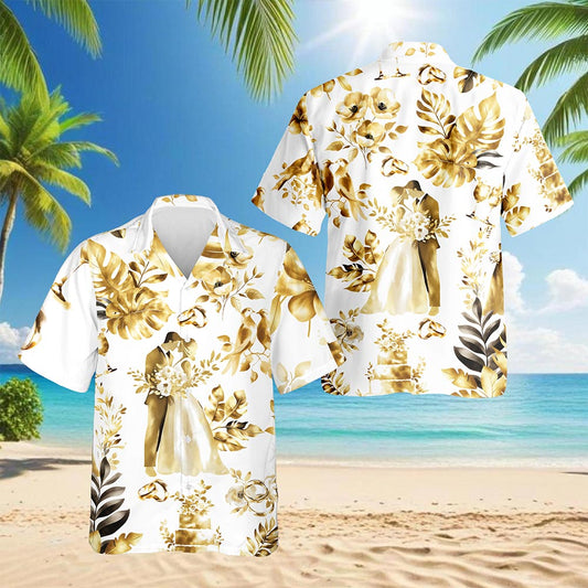 Netecom Wedding Engraved Hawaiian Shirt for Men, Tro...