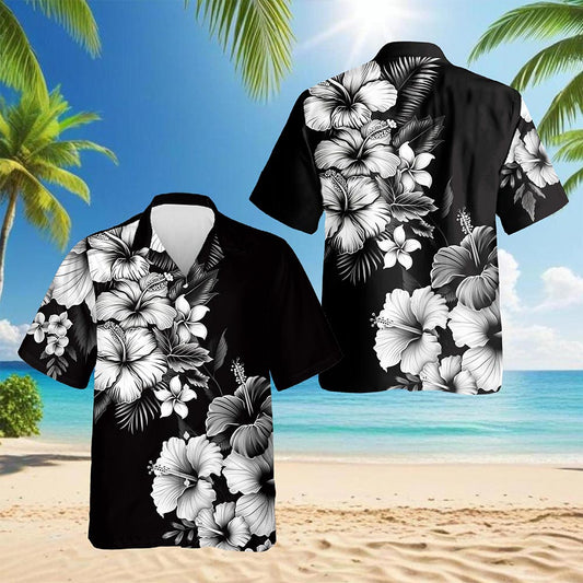 Netecom Black And White Hibiscus Hawaiian Shirt for ...