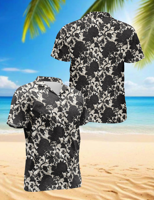 Netecom Black Gothic Floral Hawaiian Shirt for Men, ...