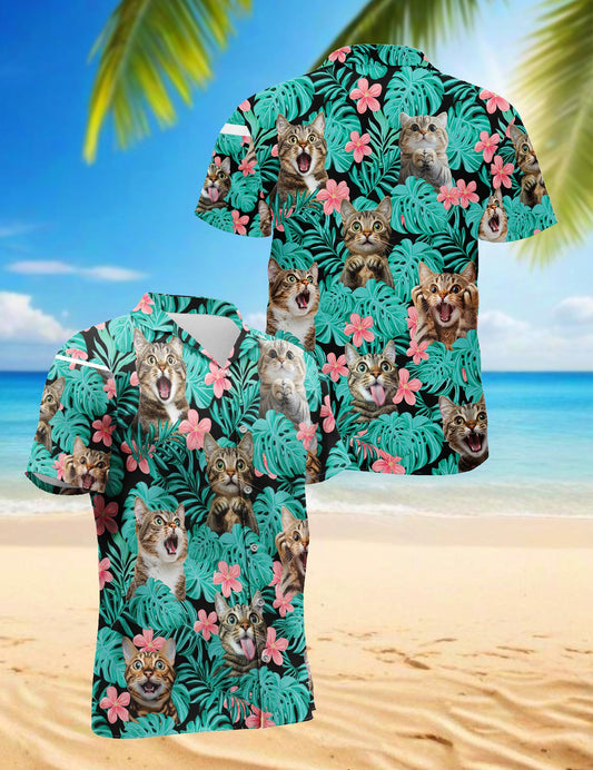 Netecom Cat And Flower Hawaiian Shirt for Men, Tropi...