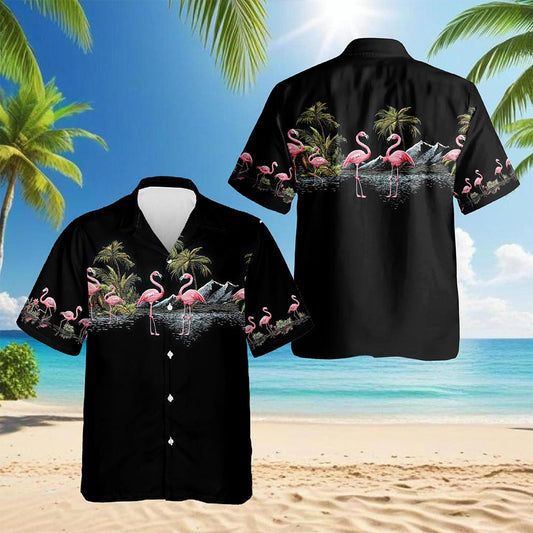 Netecom Flamingos Black Hawaiian Shirt for Men, Trop...