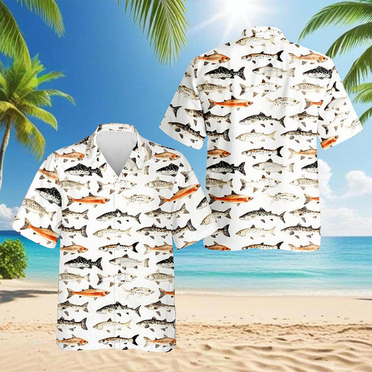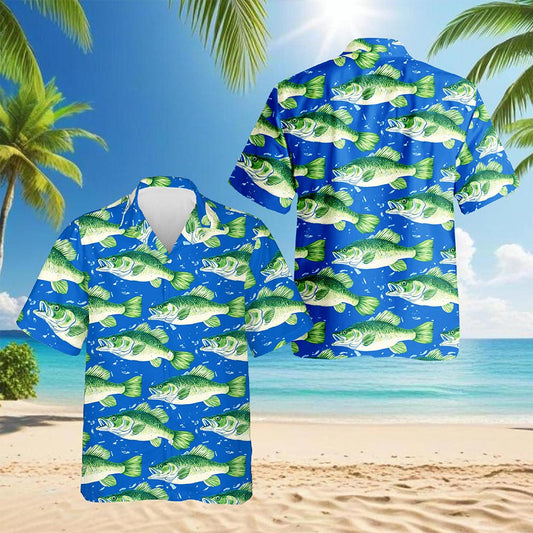 Netecom Bass Fish Pattern Hawaiian Shirt for Men, Vi...