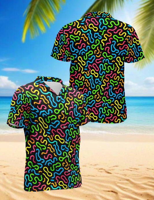 Netecom Neon Scribble Art Hawaiian Shirt for Men, Vi...