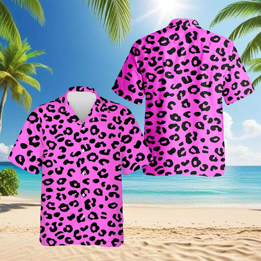 Netecom Pink Leopard Hawaiian Shirt for Men, Vintage...
