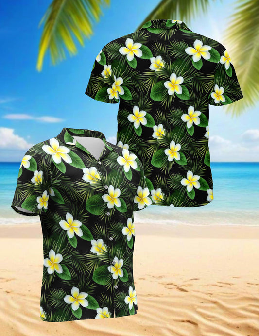 Netecom Plumeria Pattern Hawaiian Shirt for Men, Tro...