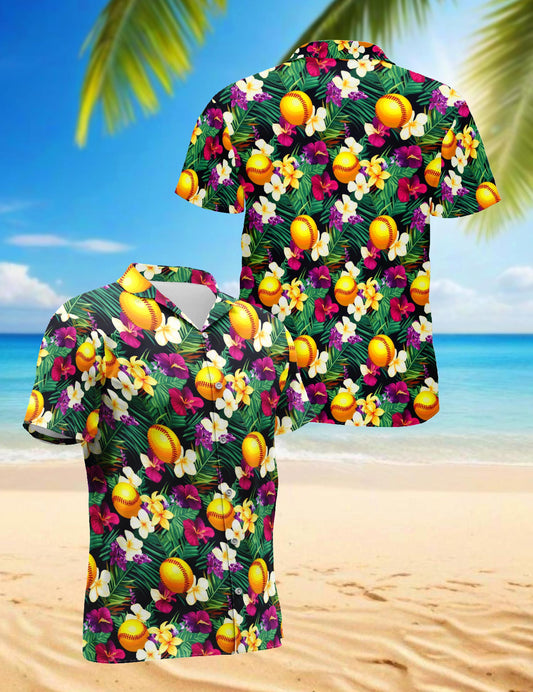 Netecom Softball Tropical Hawaiian Shirt for Men, Sp...