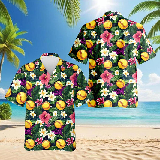 Netecom Cute Softball Hawaiian Shirt for Men, Retro ...