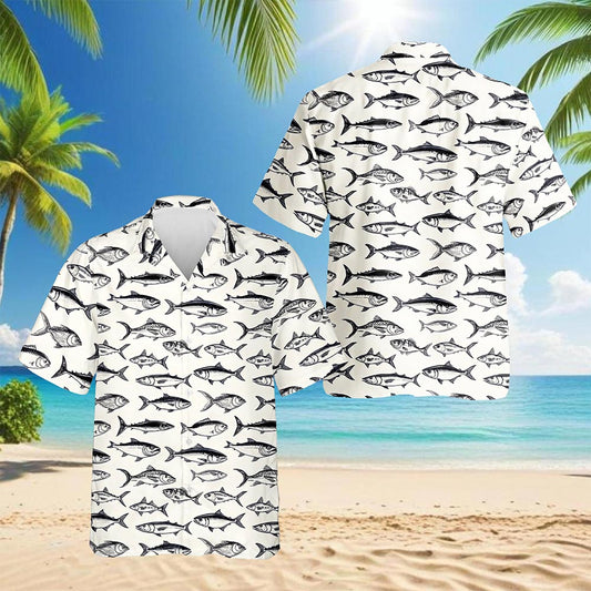 Netecom Fish Pattern Hawaiian Shirt for Men, Vintage...