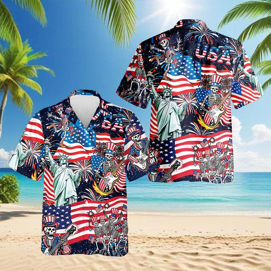 Netecom 4th of July Skeleton Hawaiian Shirt for Men,...