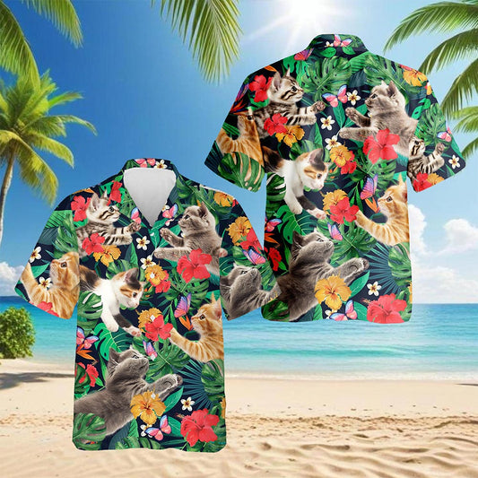 Netecom Cute Kitten Hawaiian Shirt for Men, Tropical...