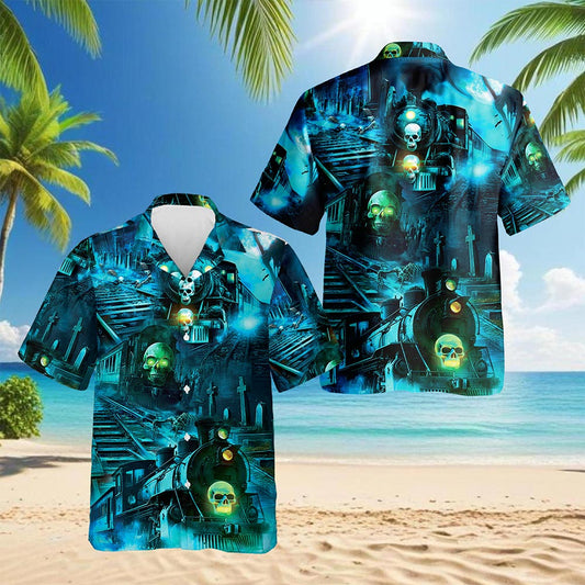 Netecom Ghost Train Hawaiian Shirt for Men, Horror S...