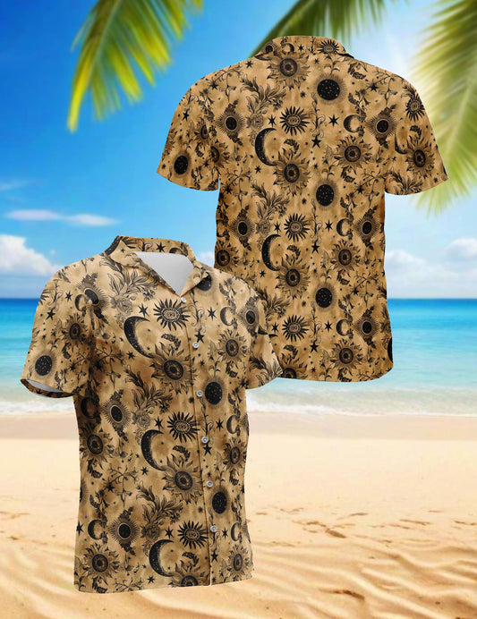 Netecom Moon Pattern Hawaiian Shirt for Men, Retro S...
