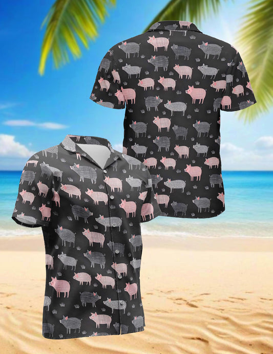 Netecom Pig Pattern Hawaiian Shirt for Men, Retro St...