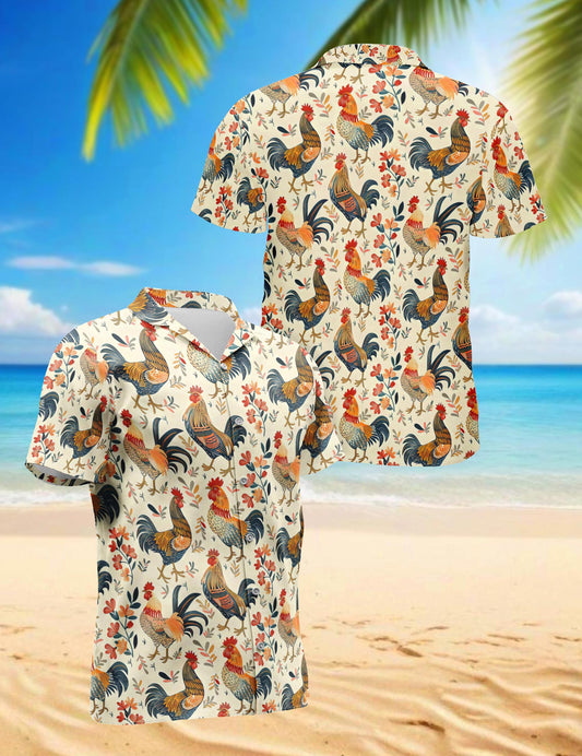Netecom Rooster Pattern Hawaiian Shirt for Men, Retr...