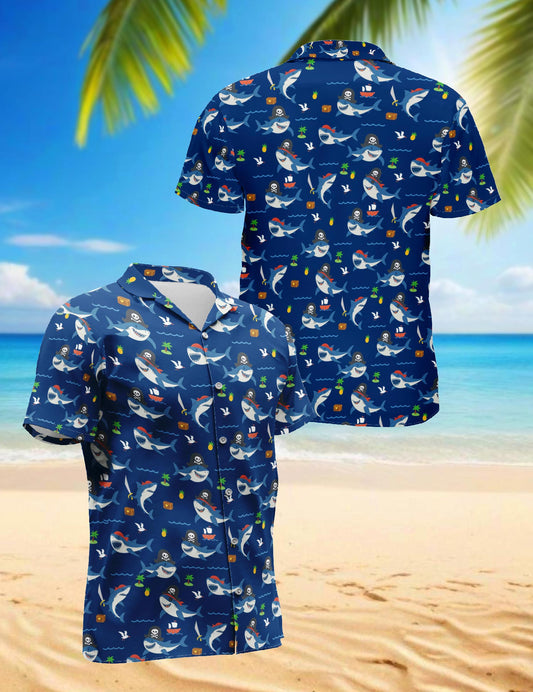 Netecom Shark Pirates Hawaiian Shirt for Men, Retro ...