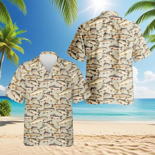 Netecom Trout Pattern Hawaiian Shirt for Men, Retro ...