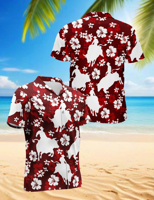 Netecom Bull Riding Hawaiian Shirt for Men, Tropical...