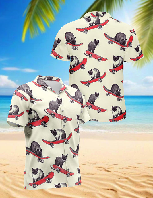 Netecom Cats Playing Skateboarding Hawaiian Shirt fo...