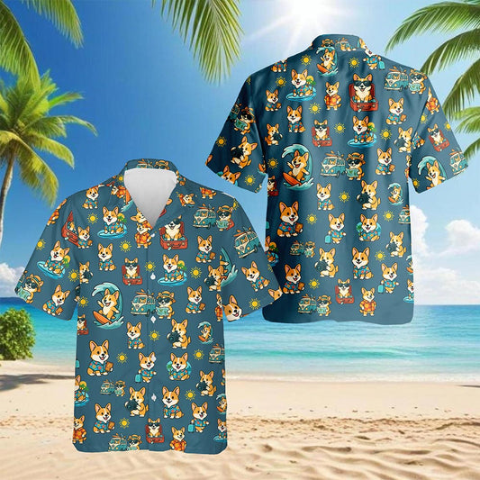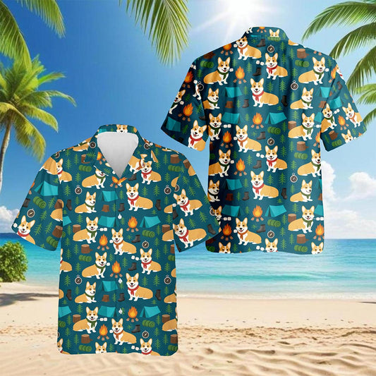 Netecom Corgi Camping Hawaiian Shirt for Men, Retro ...