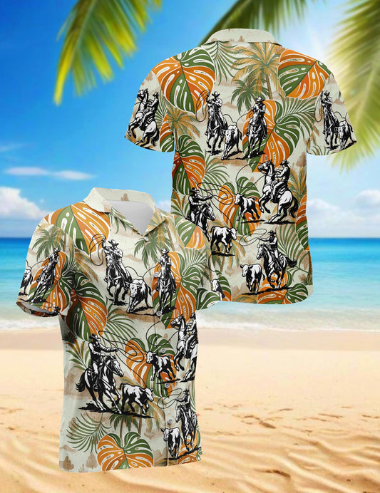Netecom Team Roping Colorful Leaves Tropical Hawaiia...