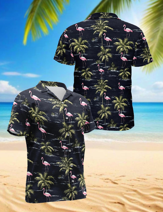 Netecom Flamingo Island Hawaiian Shirt for Men, Trop...