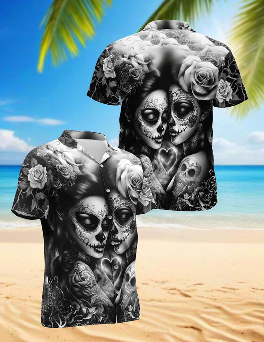 Netecom Lesbian Skull Couple Hawaiian Shirt for Men,...