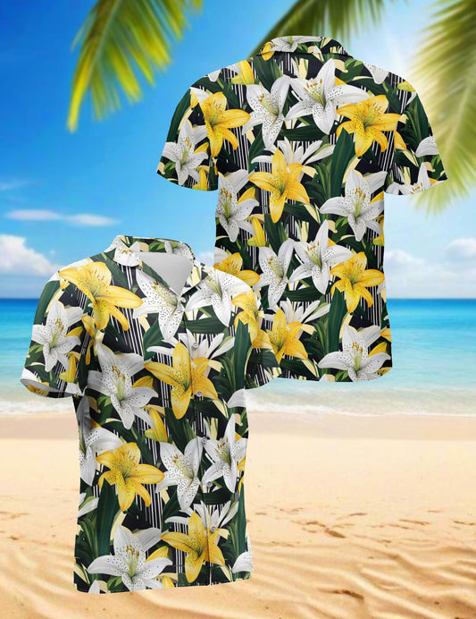 Netecom Lily Flower Hawaiian Shirt for Men, Floral S...
