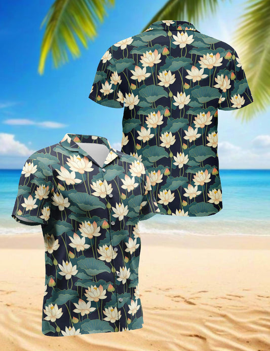 Netecom Lotus Pattern Hawaiian Shirt for Men, Vintag...