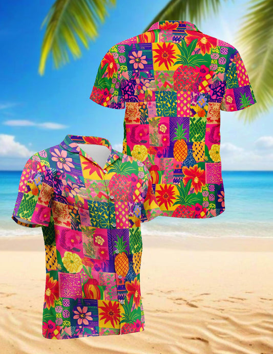 Netecom Pineapple Hawaiian Shirt for Men, Patchwork ...