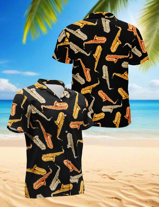 Netecom Saxophone Pattern Hawaiian Shirt for Men, Vi...