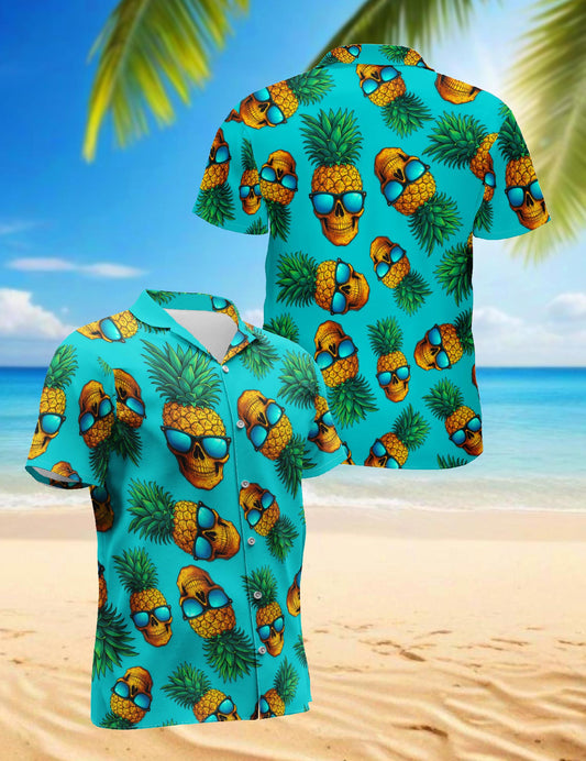 Netecom Skull Pineapple with Sunglasses Hawaiian Shi...