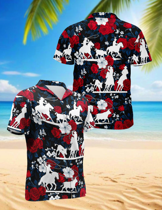 Netecom Team Roping Red Rose Hawaiian Shirt for Men,...