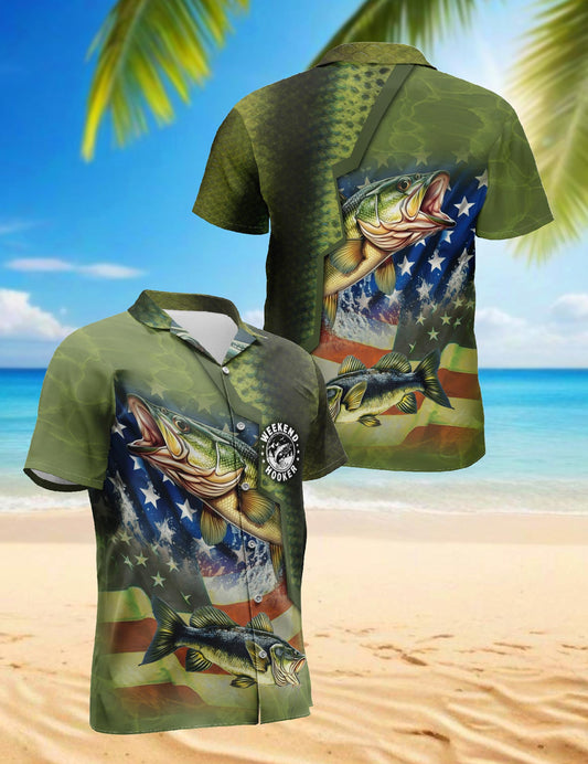 Netecom Bass Fishing Us Flag Hawaiian Shirt for Men,...