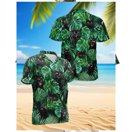 Netecom Black Cat Hawaiian Shirt for Men, Tropical S...