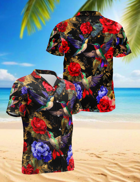 Netecom Hummingbird Peonies Hawaiian Shirt for Men, ...