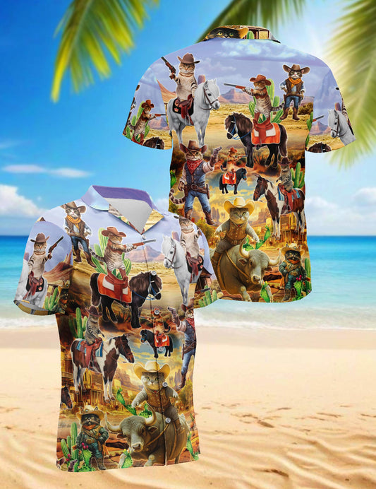 Netecom Meowdy Cowboy Cat Hawaiian Shirt for Men, We...