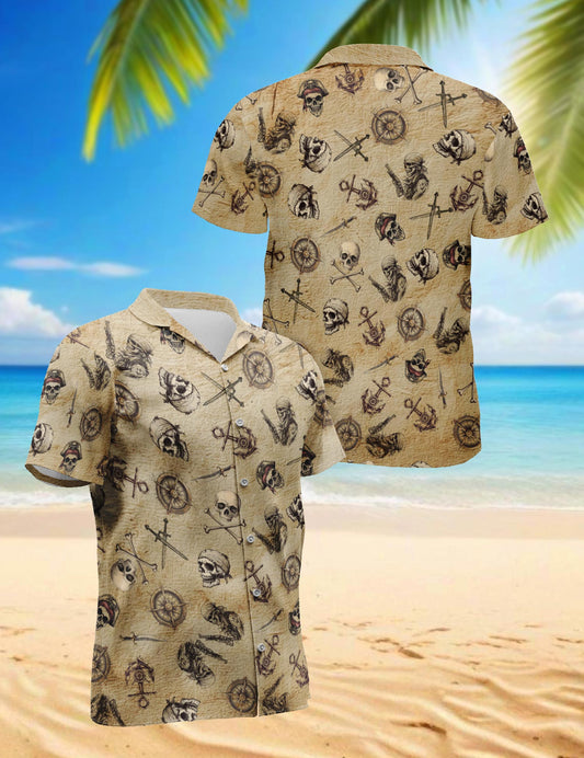 Netecom Pirate Skull Hawaiian Shirt for Men, Retro S...