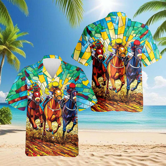 Netecom Stained Glass Racing Horse Hawaiian Shirt fo...