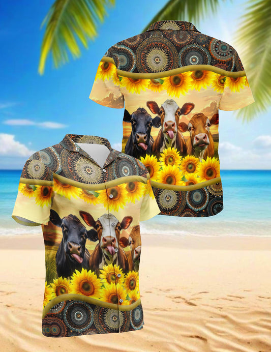 Netecom Sunflower Cattle Hawaiian Shirt for Men, Cou...