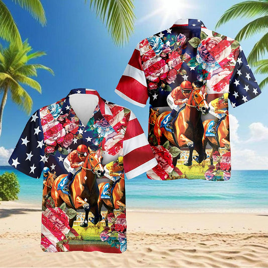 Netecom American Roses Horse Racing Hawaiian Shirt f...