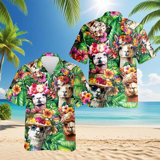 Netecom Funny Llama Hawaiian Shirt for Men, Tropical...