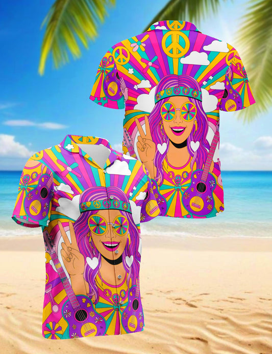 Netecom Guitar Hippie Hawaiian Shirt for Men, Hippie...