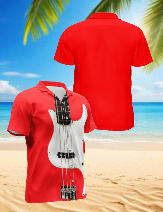 Netecom Red Bass Guitar Hawaiian Shirt for Men, Butt...