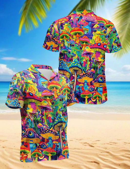 Netecom Hippie Mushroom Hawaiian Shirt for Men, Butt...