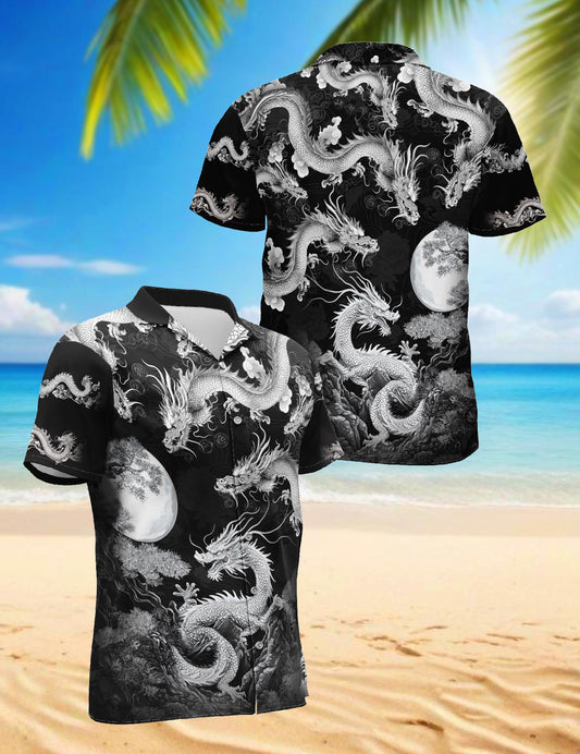 Netecom Japanese Dragon Hawaiian Shirt for Men, Butt...