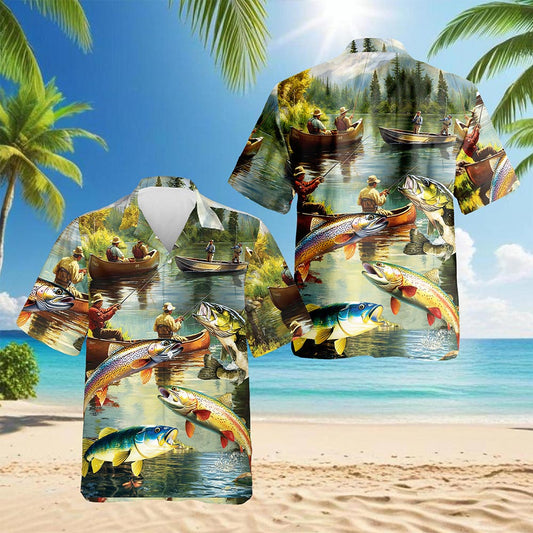 Netecom Fishing Bass Hawaiian Shirt for Men, Button ...