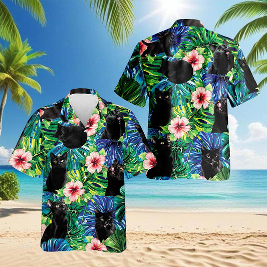 Netecom Black Cat Tropical Hawaiian Shirt for Men, B...
