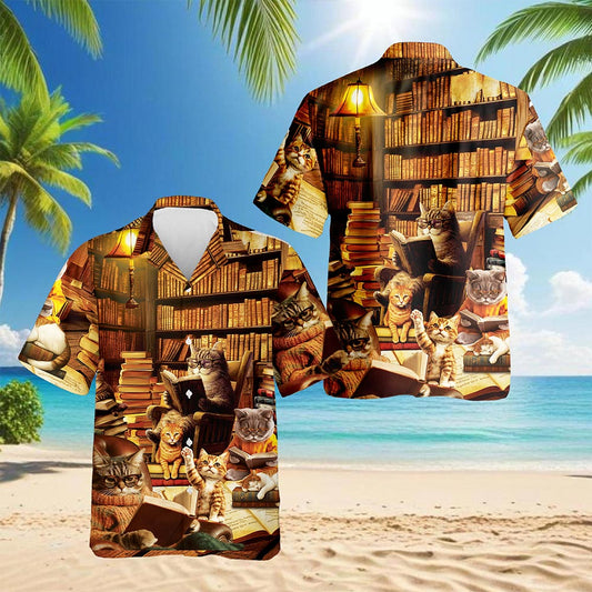 Netecom Book and Cat Hawaiian Shirt for Men, Button ...